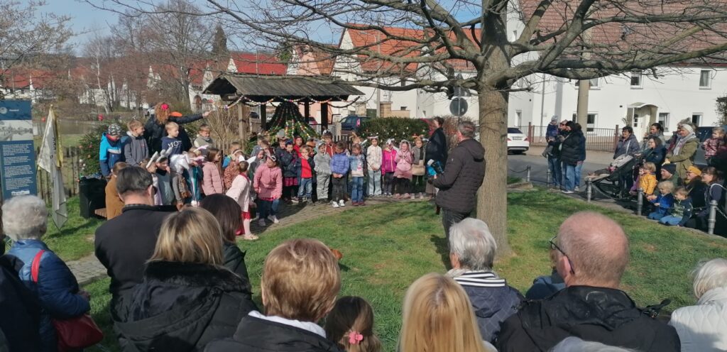 Nunmehr zum 25. Mal wurde der Osterbrunnen geschmückt und mit einem erstklassigen Programm der 1. Klassen umrahmt. Auch in diesem Jahr war es sehr gut besucht, das Wetter spielte wieder mit und bei Kaffee und selbstgebackenem Kuchen fand der Nachmittag einen schönen Abschluß. Vielen Dank an alle Helfer!